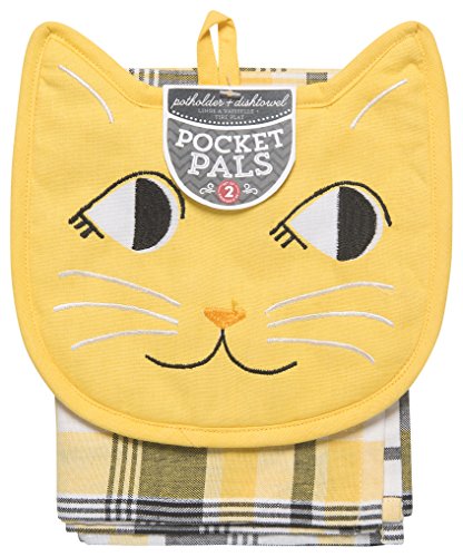 Now Designs Pocket Pals Kitchen Towel and Potholder Set, Calvin Cat