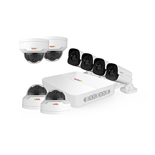 Revo America Ultra 8CH 4K H.265 NVR, 2 TB Surveillance Grade HDD, Remote Access, with 4x IR Bullet & 4x IR Mini Vandal Dome Cameras, 4 Megapixel, Indoor/Outdoor, True WDR.