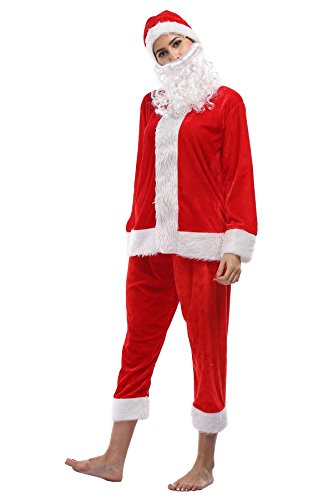 -. Feature : Material: 100% Acrylic / Size: L, XL. Not Amazon Size! / Size L--Top Length: 29.53inches, Chest: 43.31inches, Pants: 34.65inches / Size XL--Top Length: 30.71inches, Chest: 45.28inches, Pants: 34.65inches / Package: 1 hat + 1 top + 1 pants + 1 fake beard