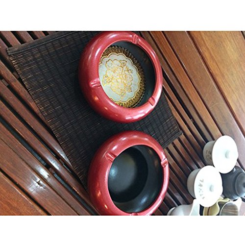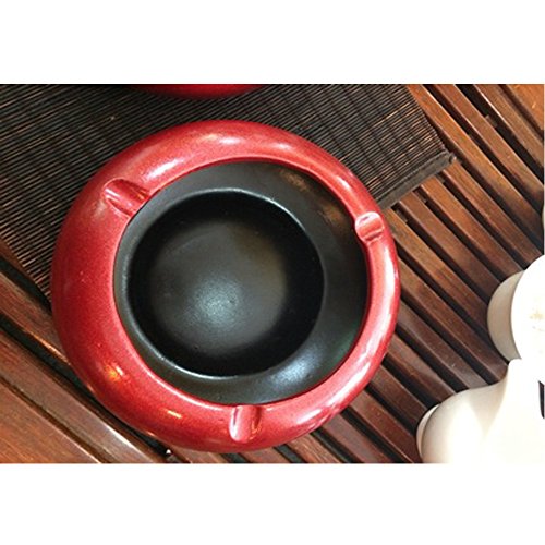 Honoro Retro Ceramic Cigar Ashtray,Tabletop Decoration Cigarette Ashtray for KTV Bars Cafe Hotel,Wood Red