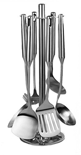 -. Title : Premium One Piece Stainless Steel Kitchen Essentials 6-Piece Brushed Finish Cooking Utensil Set and 360テつー Holder by Clever Chef
