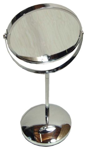 Chrome Fluted Stem Vanity Mirror w/ Regular & 5x Magnification Sides