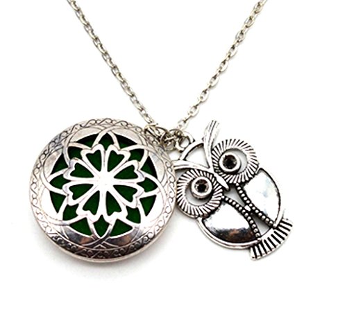 Stunning - BOHO - Essential Oil Diffuser Locket Owl Accent Necklace - - Chakra - EO - owls2