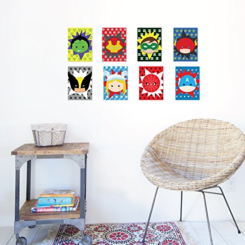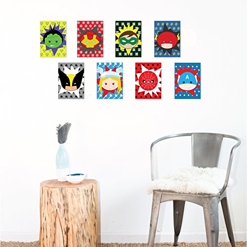 -. Title : Kid's Playroom Decor, Superheros Eight 5x7" Set For Kids, Baby Boy Nursery Decor, Superman, Batman, Spiderman, Captain America, Superhero Wall Art, Marvel Wall Art