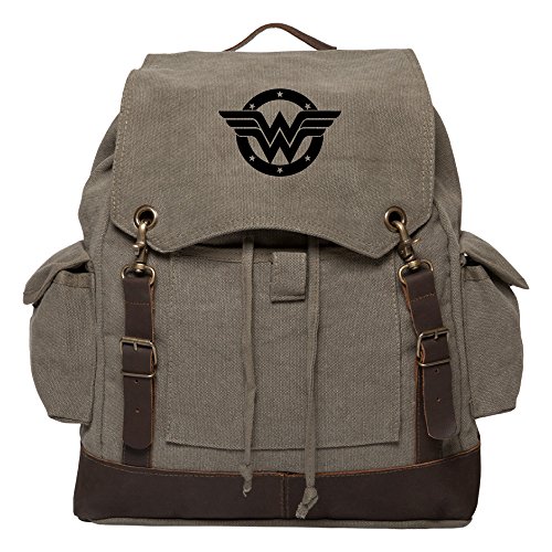 Wonder Woman Logo Vintage Canvas Rucksack Backpack with Leather Straps