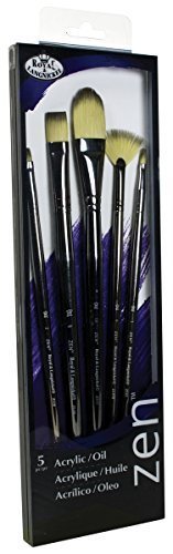 Royal & Langnickel Zen 5 Piece Long Handle Acrylic & Oil Filbert Variety Paint Brush Set by Royal & Langnickel