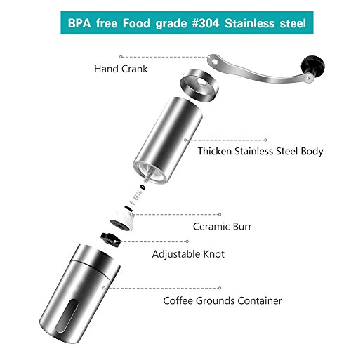 ◆Portable and Durable-- No batteries, power, or long plastic cords needed to operate your portable compact coffee grinder, allowing you to travel with and brew freshly roasted ground coffee beans on your next camping, hiking, backpacking, or outdoors trip.