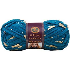 Lion Brand Yarn 231-171 Gold Leaf Yarn, Teal/Gold, 3 Balls of Yarn