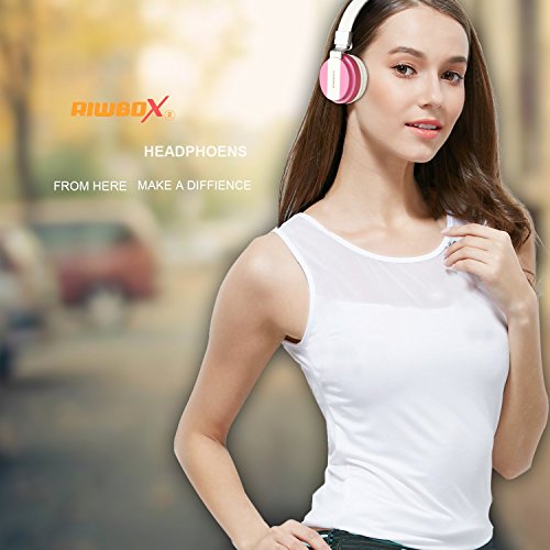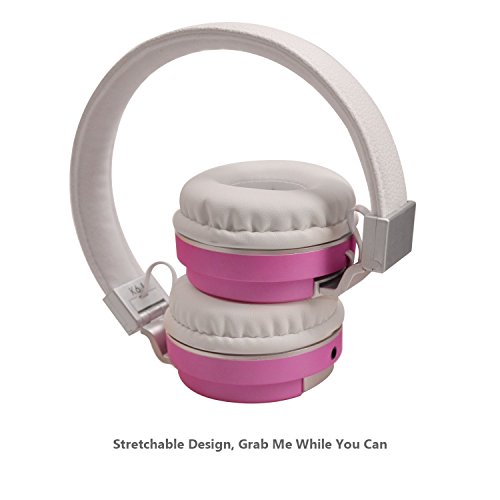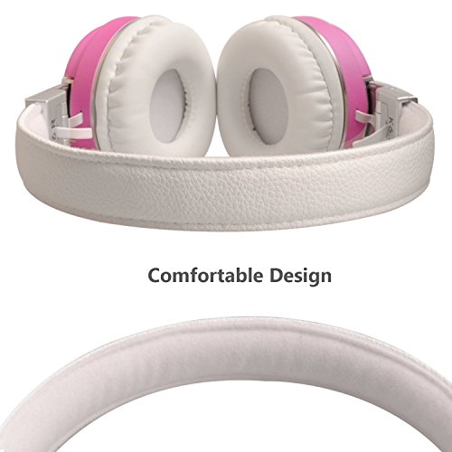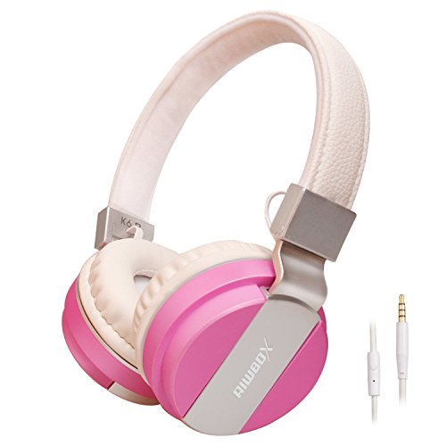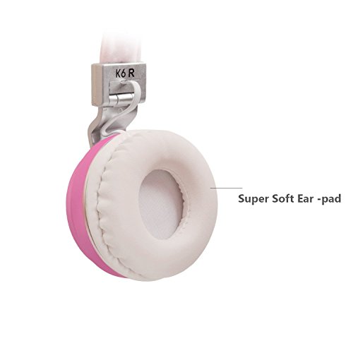Riwbox K6 Stereo Lightweight Foldable Headphones Adjustable Headband Headsets with Microphone 3.5mm for Cellphones Smartphones Iphone Laptop Computer Mp3/4 Earphones(pink)
