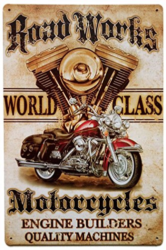 ERLOOD Road Works World Class Motorcycle Retro Vintage Decor Metal Tin Sign 12 X 8