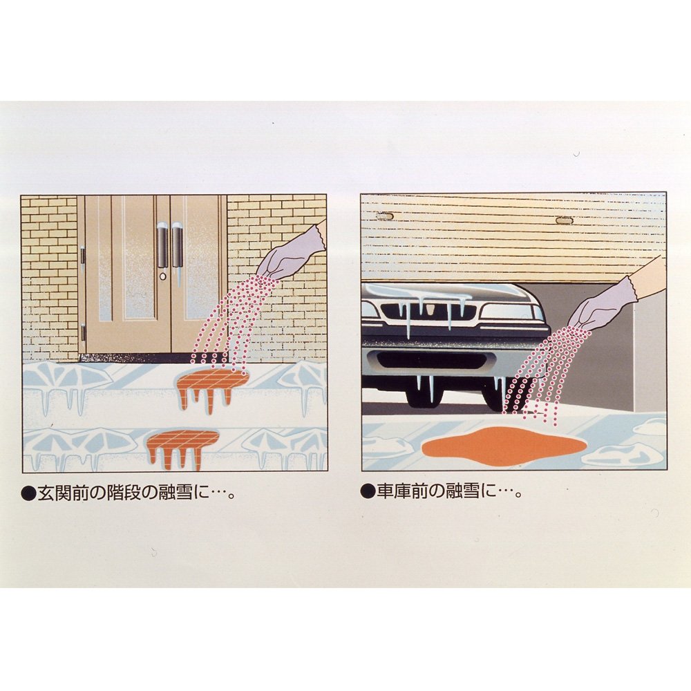 ● Please sprinkle in places that you do not want the next morning freezing (around the entrance, stairs, parking place), snow cover after snowfall, please sprinkle where you want to melt ice burn