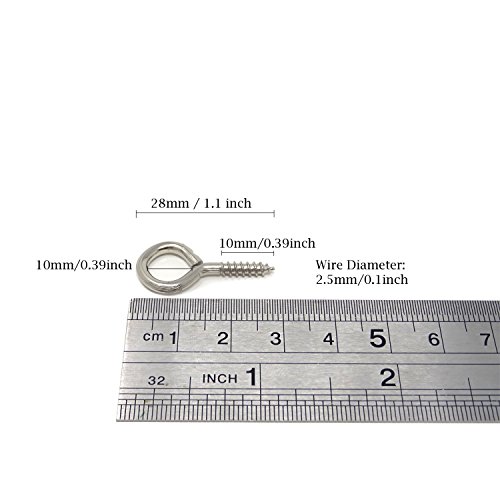 Honbay 100PCS 28mm(1.1 Inch) Nickel Plated Screw Eyes Pins Eye Bolt Hooks Eye Shape Screw Hooks Hanging Cup Hooks