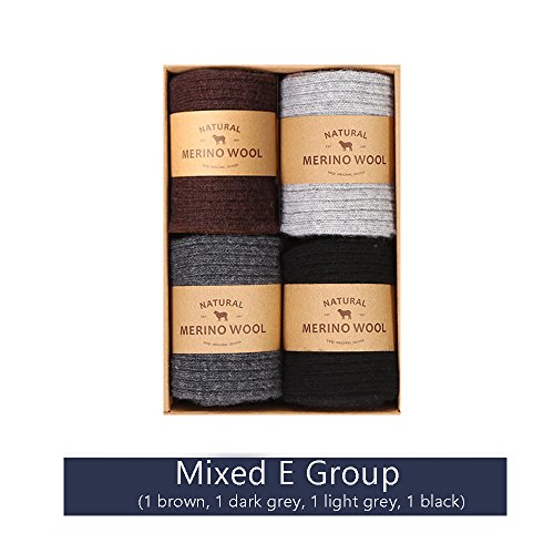 -. Binding : Apparel -. Brand : Ideasox -. Color : Mixed Color E Group -. Department : mens -. EAN : 6919605308388 -. Feature : Not all are called "Merino wool". The pure quality of the imported and pure blood of Australia / It's thick enough and the material is full. The thickness is 3 times heavier than the ordinary socks / 41.5% Merino wool, wool content beyond peer more than 5 times / Constant temperature and constant humidity. Warm and warm. The elasticity and warmth retention are superior, the color is pure, the luster is natural and soft, and the warmth retention is better. / More manly, selection of excellent products to keep you confident in the image of a man -. IsAdultProduct : 0 -. NumberOfItems : 4 -. PackageQuantity : 4 -. ProductGroup : Apparel -. ProductTypeName : SOCKSHOSIERY -. Size : free size 39-45 -. Title : IDEASOX winter dress socks men pack Merino wool socks double thick USA tube men's business socks warm 4 packs black