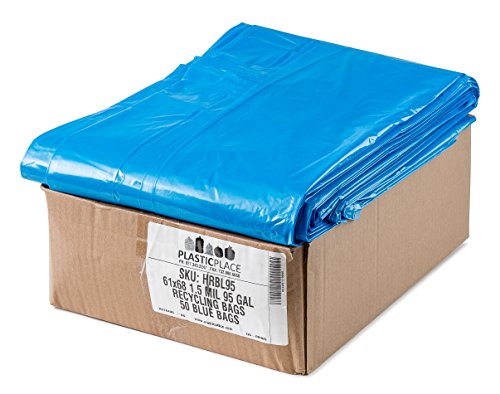95-96 Gallon Recycling Trash Bags, 61"W x 68"H, 1.5 Mil, Blue, 50/Case