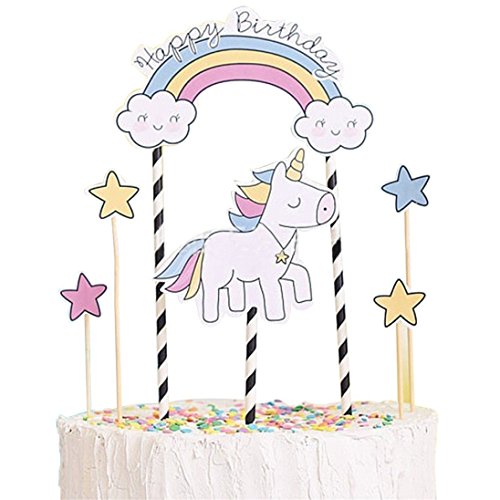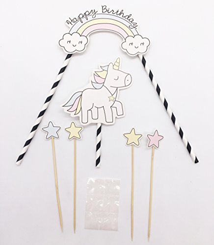 Unicorn Cake Topper, KOOTIPS Cute Unicorn Happy Birthday First Birthday Cupcake Topper Cake Smash Candle Alternative Party Handmade (Unicorn Stars Cake Topper)