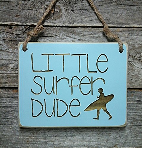 -. Title : Little Surfer Dude Small Hanging Sign - Boy's Room Decor - Surfing Sign