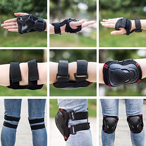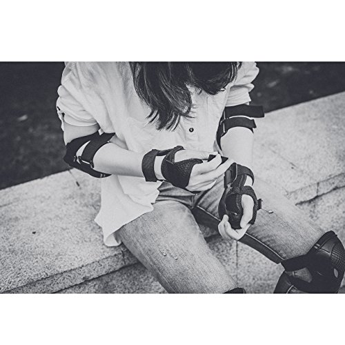 -. Feature : High hardness PVC shell, thickened soft sponge, comfortable and durable. / Velcro strap design, slip-resistant and convenient. / Elbow, knee and wrist 6pcs a set, bring you all-round and perfect protection while doing sports. / Fine workmanship and fashion outlook. / Suitable for skateboard, roller blading, riding a scooter, bicycle and many other outdoor sports.