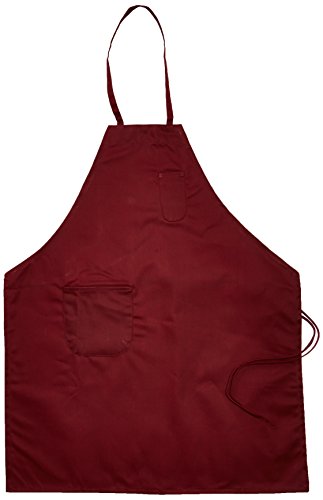 Winco BA-PBG Full Length Bib Apron with Pocket, Burgundy