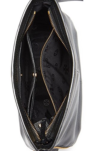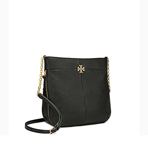 Tory Burch pebbled calfskin crossbody bag with golden hardware.