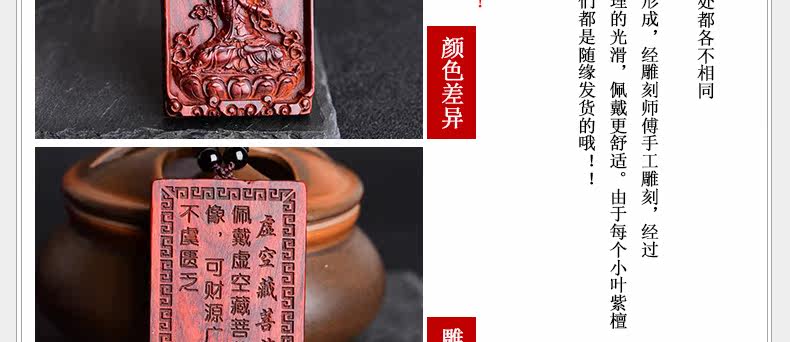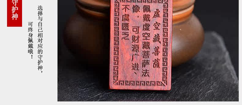 开光 小叶紫檀生肖八大守护神吊坠 虚空藏菩萨属牛属虎本命佛项链