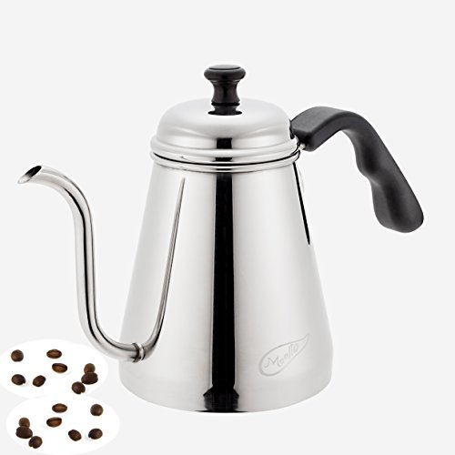 -. Feature : ?Gooseneck Design:?Goose neck kettle that really lets you control the flow of water to ground coffee. The spout is very 'accurate' and allows you to precisely control the flow of water out of the kettle. Perfect for pour-overs. / ?Hight Stainless Steel Material? :This kettle made out of 18/8 stainless steel, which gives it a brilliant, durable, rust-resistant finish that is easy to maintain, and will last a lifetime. Yes, a lifetime, possibly even longer?! But you have to take good care of it! / ?Enjoy Coffee time?:Easy to make hand drip coffee because water pressure is constant by virtue of thin and long spout." / ?Ergonomics?:The thin-spout design and overall ergonomics of the kettle's design allow for a very slow and controlled flow rate, crucial to brewing with the Wave