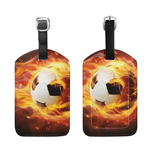 (ALAZA)/Accessories/Luggage, Bags Travel/DIRECT FROM USA/Cooper girl Football In Fire Luggage Tag Travel ID Label Leather for Baggage Suitcase 1 Piece