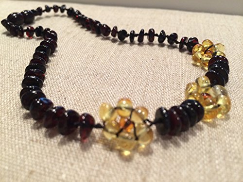 BALTIC AMBER TEETHING NECKLACE CHERRY LEMON FLOWER 11 INCH BABY, INFANT, AND TODDLER. DROOLING PAIN FEVER NATURAL ORGANIC BEADS