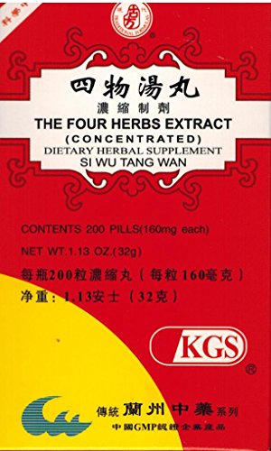 The Four Herbs Extract is a modern preparation according to the ancient prescription "Si Wu Tang" (Four Substance Decoction) in TCM originally appeared in Imperial Grace Formulary of the Tai Ping Era (Tai Ping Hui Min He Ji Ju Fang), that is often prescribed for clients with anemia, irregular menstruation, threatened abortion, post-partum anemia in China. In modern clinic, it is applicable to Dysmenorrhea; Irregular Menstruation; Pre-Menstrual Syndrome; Anemia; Threatened Miscarriage; Post Partum Weakness; Insufficient Lactation; Urticaria; Neurogenic Headache. 0