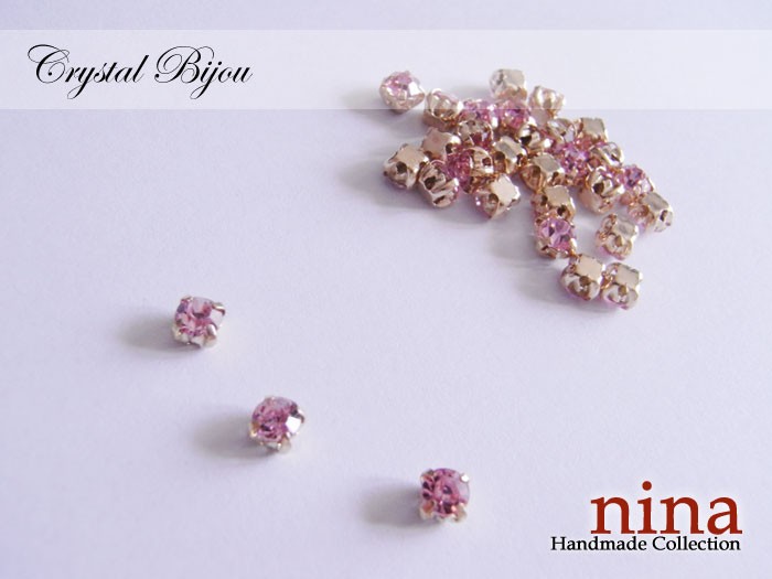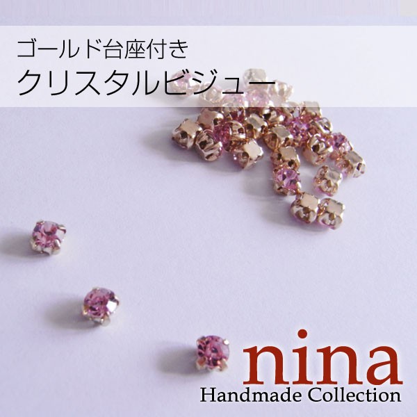 ゴールド台座付きクリスタルビジュー 4mm #3 ライトローズ 30個
