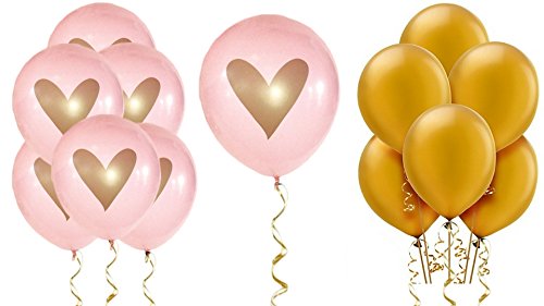 - MATERIAL: Pink balloons have an Antique Gold Heart and Gold 12" balloons are Pearl Latex with a beautiful shimmer finish. Filled with helium, they float. Please note, balloons and heart appear darker until filled with air.