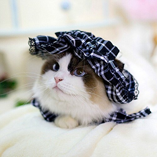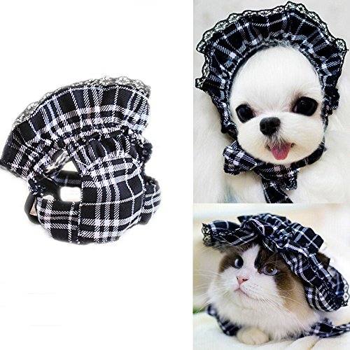 -. Feature : This is a functional hat Made for Cats, Puppies and Small Sized Dogs everyday's wear, parties, Halloween, fancy dress ball, birthdays, photo shoot or play date / Also perfectly protect your furry friend's hair when eating or going out to play / Size Small: best for pets under 7 Lbs / Classic plaid design matching with beautiful lace, long enough neck strap both for adjusting and for making a big bow / If you want a unique pet hat to have your pet get as much attention as you, make sure they have the lovely hat they deserve and want.