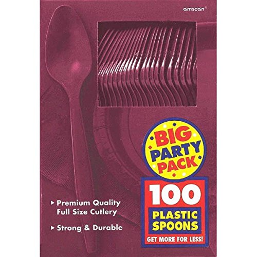 Amscan Big Party Pack 100 Count Mid Weight Plastic Spoons, Berry