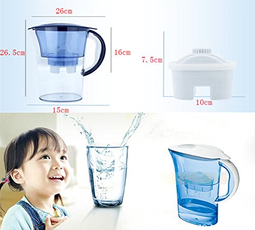 -. Binding : Kitchen -. Brand : AnGeer -. Color : Blue -. EAN : 0601187214381 -. Feature : AnGeer water pitcher with one filter can turn your ordinary tap water into clean drinking water. / The filter can remove most of chlorine and heavy metals in your water efficiently for cleaner water. / It can also reduce the taste and odor in your water and make you drinking water fresh-tasting. / One Filter can provide up to 150L (three months) of clean water. / The pitcher is made of food-grade plastic material for safety and high quality. -. IsAutographed : 0 -. Label : AnGeer -. Manufacturer : AnGeer -. MPN : 8O-Y7JN-GCWQ -. PartNumber : 8O-Y7JN-GCWQ -. ProductGroup : Home -. ProductTypeName : HOME -. Publisher : AnGeer -. Studio : AnGeer -. Title : Dispenser Water Pitcher AnGeer With One Filter,2.5L -. UPC : 601187214381