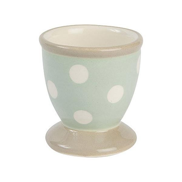 ミントの優しい色合いとドットがかわいいカントリーなエッグスタンドです。