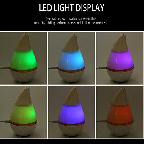 - Aroma therapy, relieves strain and eases stress.7 Colors LED light display.Decoration, warms atmosphere in the room by adding perfume or essential oil in the atomizer