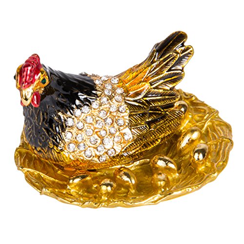 QIFU-Hand Painted Enameled Hen Style Decorative Hinged Jewelry Trinket Box Unique Gift For Home Decor