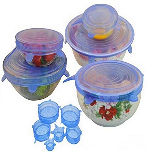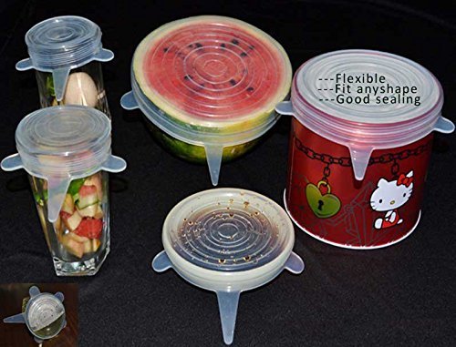 6 Pack Silicone Reusable Lids Kitchen Gadget, Super Stretch Lids, Best Durable Kitchen Baking Tool and Coolest Cooking Gadget, Dishwasher and Freezer Safe.