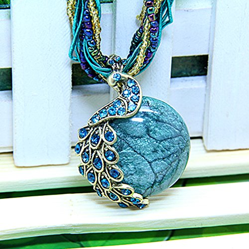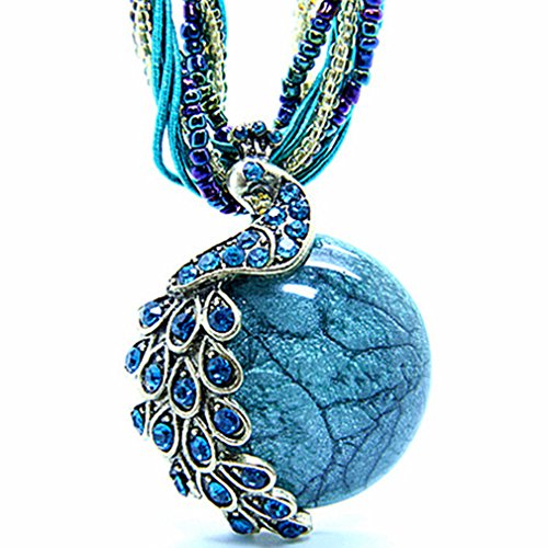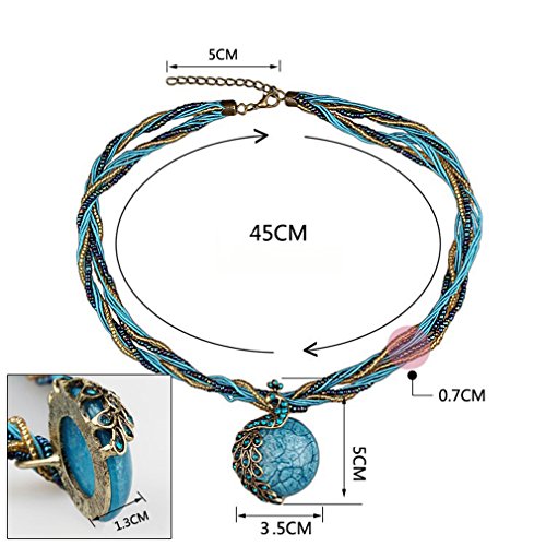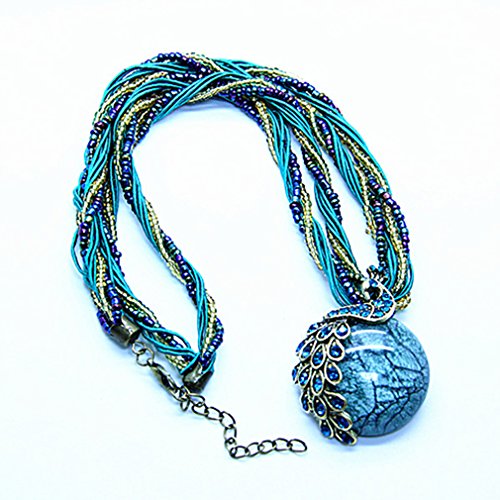 Qiaoya Women Vintage Necklace Retro Peacock Pattern Beads Chain Bohemian Statement Necklace