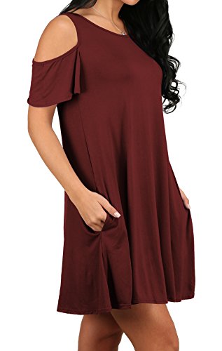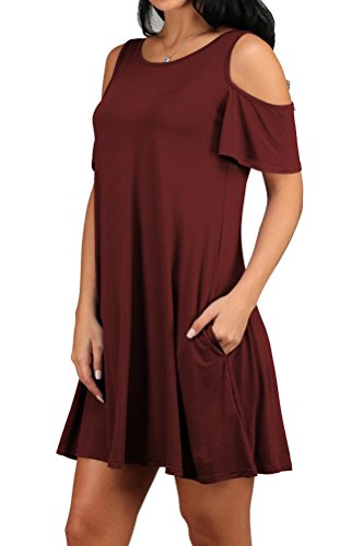 Cut out cold shoulder,open shoulder,hand pockets,scoop neck,ruffle sleeve,above knee design