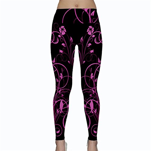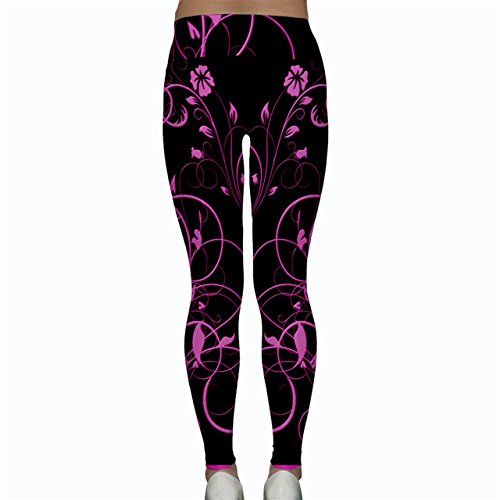 Saytoons Womens Pink Floral Swirl Yoga Leggings