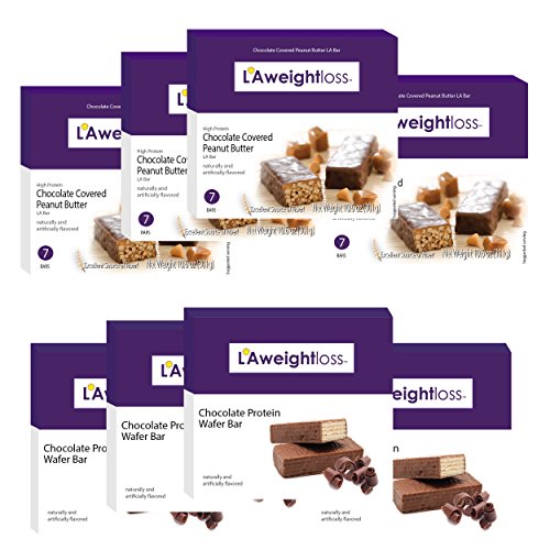 -. Binding : Health and Beauty -. Brand : L A Weight Loss & Wellness -. EAN : 0600154188212 -. Feature : Includes 4 boxes of LA Chocolate Covered Peanut Butter bars and 4 boxes of LA Chocolate Wafterl bars. / Packed with 15 grams of protein in each serving - plus only 3 grams of sugar. / LA Bars are a delicious and nutritious partner in your weight loss journey to help keep you satisfied. / Lose weight fast with the LA Bars and Rapid Results program - helping millions lose weight for over 25 years. -. IsAdultProduct : 0 -. Label : LA Weight Loss -. Manufacturer : LA Weight Loss -. ProductGroup : Health and Beauty -. ProductTypeName : HEALTH_PERSONAL_CARE -. Publisher : LA Weight Loss -. Studio : LA Weight Loss -. Title : LA Bars - Chocolate Peanut Butter & Chocolate Wafer 8 Pack by LA Weight Loss -. UPC : 600154188212