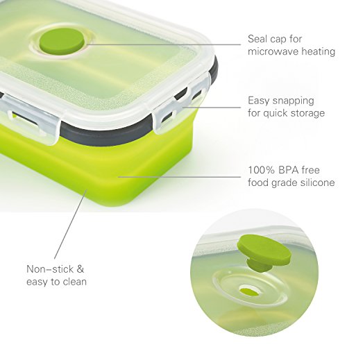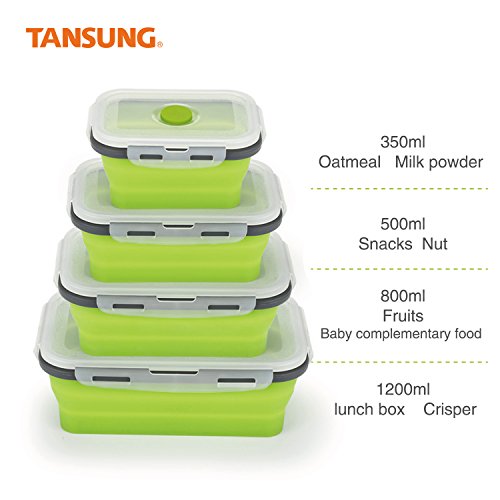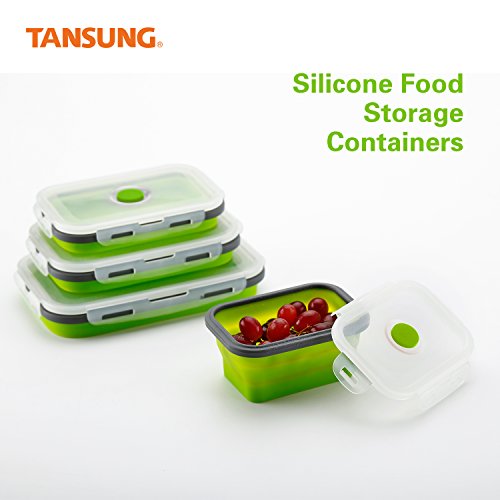 - Space saving design——Your TANSUNG silicone containers are designed to maximize convenience and save space in the kitchen. Each container is fully collapsible to 1/3 of the original size when not in use, and all can stack on top of one another.