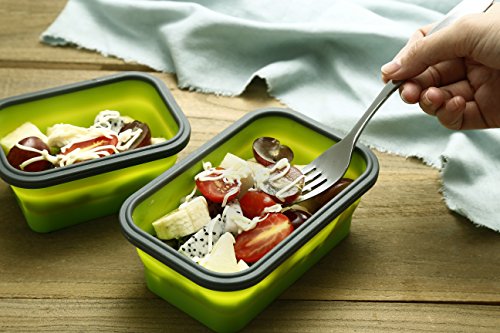 Silicone Collapsible Bento Lunch box- Set of 2 Oblong Silicone Food Storage Containers, BPA Free, Microwave, Dishwasher and Freezer Safe (350ML , 500ML , 800ML , 1200ML) (Large 28ozExtra large 42oz)