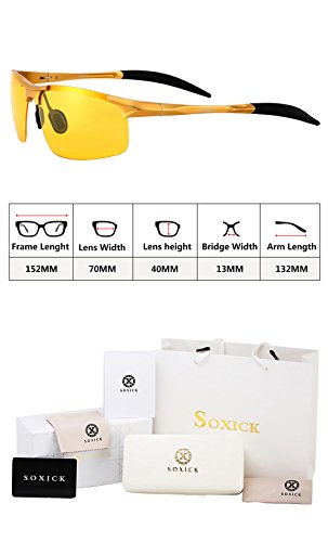 -. Feature : Anti-Reflective Lenses - Designed to dim oncoming car headlights or sharp reflections, polarized lenses provide reduced glare for clearer vision while driving / Reduced Eye Fatigue - The special filter on our night driving glasses help reduce strain which can cause headaches or migraines; all so you can stay clear and focused / Modern, Stylish Frames - Soxick driving glasses for men and women come in four wraparound eyeglass frame styles and colors, perfect for matching your unique flair / Multipurpose Active Wear - More than glasses for night driving, these sport glasses can be used for reading, computer or gaming use, cycling, running, fishing and more / Enhanced Retina Protection - Fitted with polarized lenses, these Soxick sunglasses also protect against UVA and UVB rays to help keep eyes healthy and clear