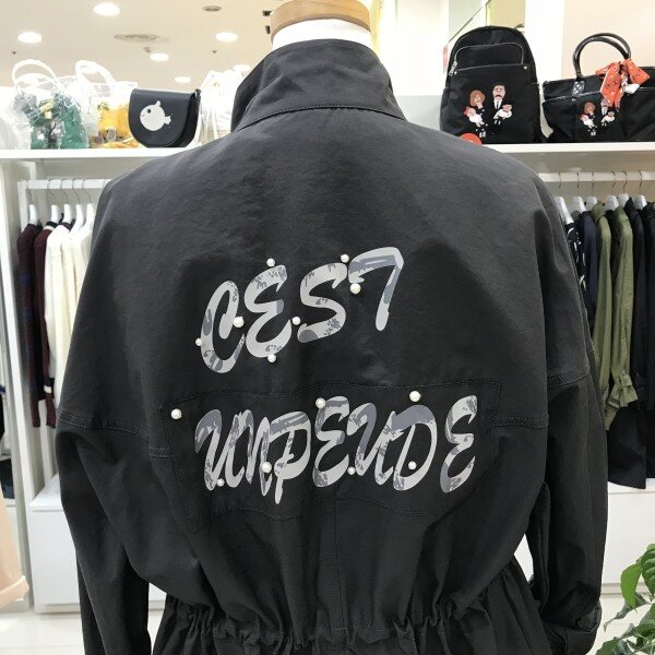 비즈 장식 야상 점퍼입니다진주 비즈 포인트로 여성스러움과 레터링 프린트로 캐주얼하게도 연출되는 야상 점퍼입니다허리 라인을 조절하여 슬림하게 연출 가능하며 소매 사이즈도 조절된답니다사이즈 55 기준가슴둘레 82cm엉덩이둘레 90cm신장 160cm총장 75cm