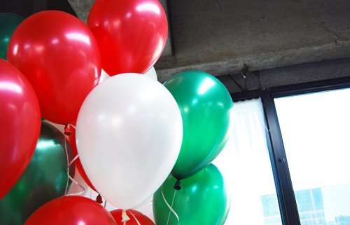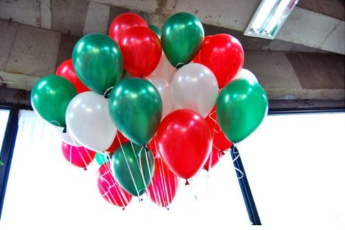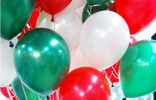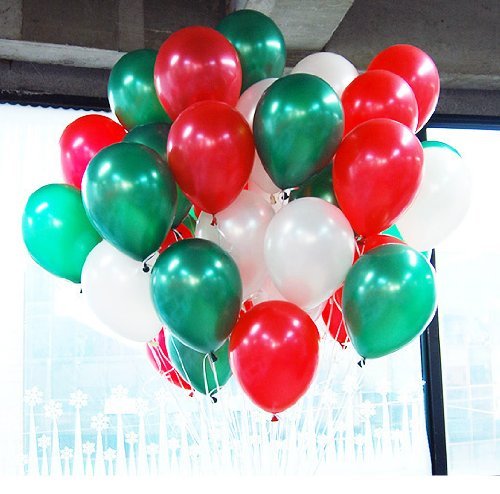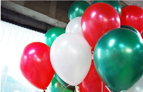NEO 10'' 100ct Assorted White & Ruby RED & Emerald Green Latex Balloons