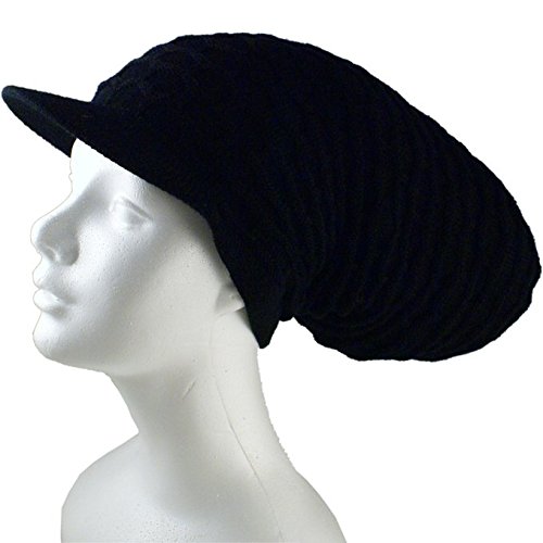 -. Title : SSK® Rasta Dread Knit Tam Hat - "Dreadlocks Cap" (Long Solid Black, with Brim)