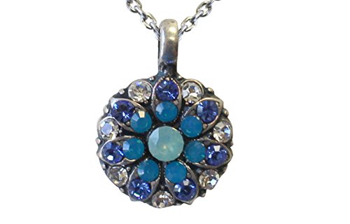 -. Binding : Jewelry -. Brand : Mariana -. Color : Blue/Silver -. Department : womens -. EAN : 0659503153173 -. Feature : Shades of Blue & Clear Swarovski Crystals : silver plated pendant necklace : nickel free / Delicate Pendent : One side has a floral design made of Swarovski Crystals : The back has a three dimensional guardian angel / pendant measure approx 5/8" (about the size of a dime) : necklace is adjustable from 15" to 19" / hand crafted with Swarovski crystals & is designed with love, warmth & spiritual harmony / Made in Israel : Lifetime guarantee -. Model : N5212 1041 -. ProductGroup : Jewelry -. ProductTypeName : FASHIONNECKLACEBRACELETANKLET -. Title : Mariana "Zhang" Guardian Angel Swarovski Crystal Pendant Necklace -. UPC : 659503153173