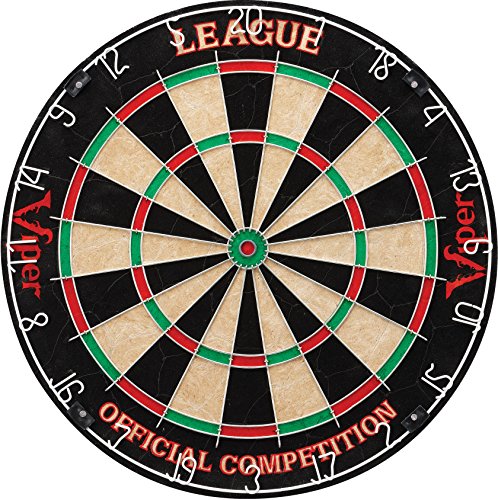 -. Feature : Constructed from self-healing sisal bristle fibers compressed together, providing unsurpassed durability / Features a staple-free bullseye which helps prevent bounce-outs; A movable number ring further extends the dartboard's life / Viper League is an official tournament size board, measuring 18" in diameter and 1.5" D / Utilizes thin, rounded galvanized wires that allow darts to slide off the spider and land in the target area / Dartboard accommodates both steel tip and soft tip darts and includes mounting hardware