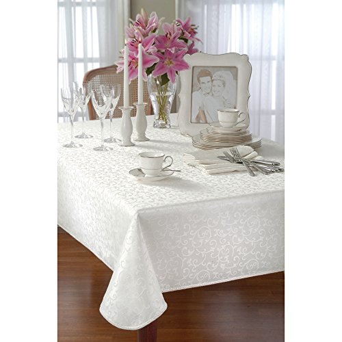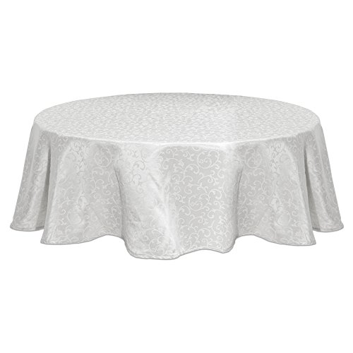 - Elegant round, white tablecloth from Lenox